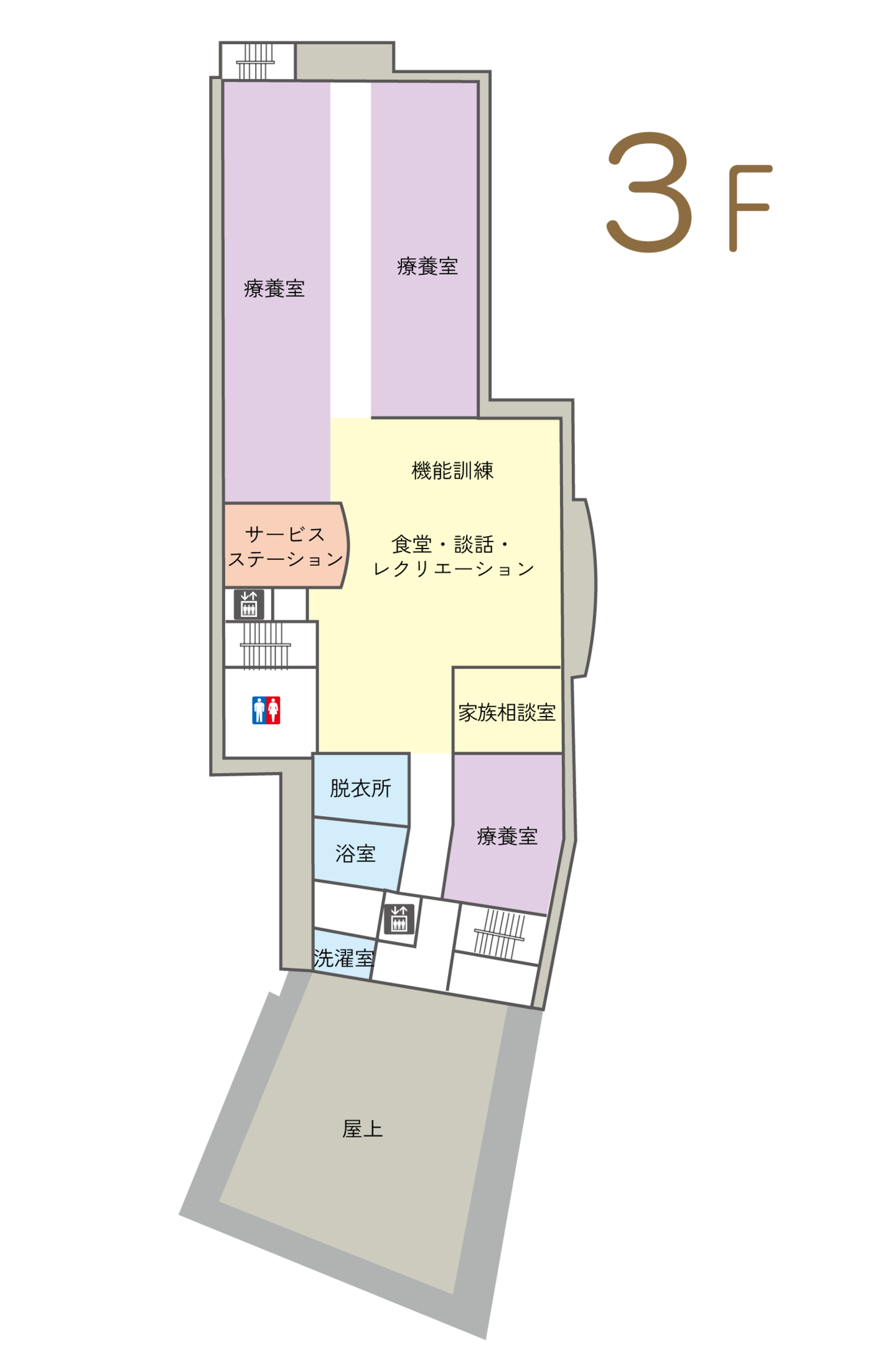 - 各療養室にトイレを配し、利用者の自立を促す環境を整備しました。